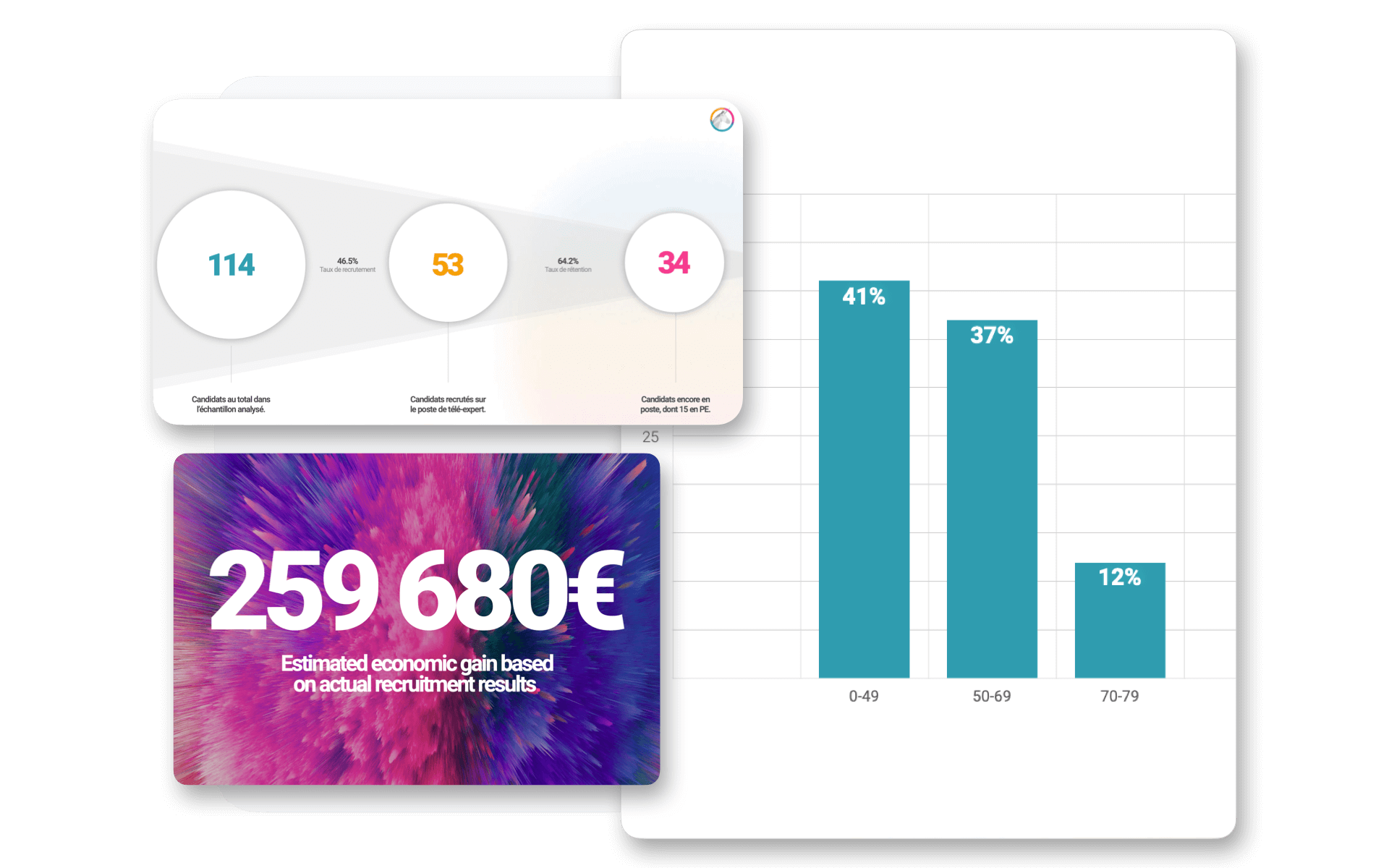 Thanks to predictive recruitment and soft skills analysis, our clients have reduced turnover, multiplied their team’s performance, and achieved up to +20% ROI.